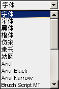 设置当前选区内文字的字体名称。默认为宋体。可以在语言包中预设此下拉框的选项值。 |